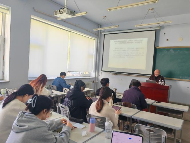俄文系邀请,俄罗斯科学院中国与现代亚洲研究所首席研究员弗拉基米尔·彼得洛夫斯基教授为外语学院俄文系研究生做了为期10天的短期课程。在全球化的背景下,安全与发展问题日益成为国际社会关注的焦点,彼得洛夫斯基教授的系列讲座主要围绕东北亚地区安全与合作、北极地区中俄合作、新时代中俄战略合作伙伴关系的内涵、新时代“一带一路”倡议的深刻含义以及俄乌冲突的原因与前景等问题展开。彼得洛夫斯基教授指出在全球安全与发展面临严峻挑战的形式下,中国式民主的理念对全世界国家都具有积极的借鉴意义。